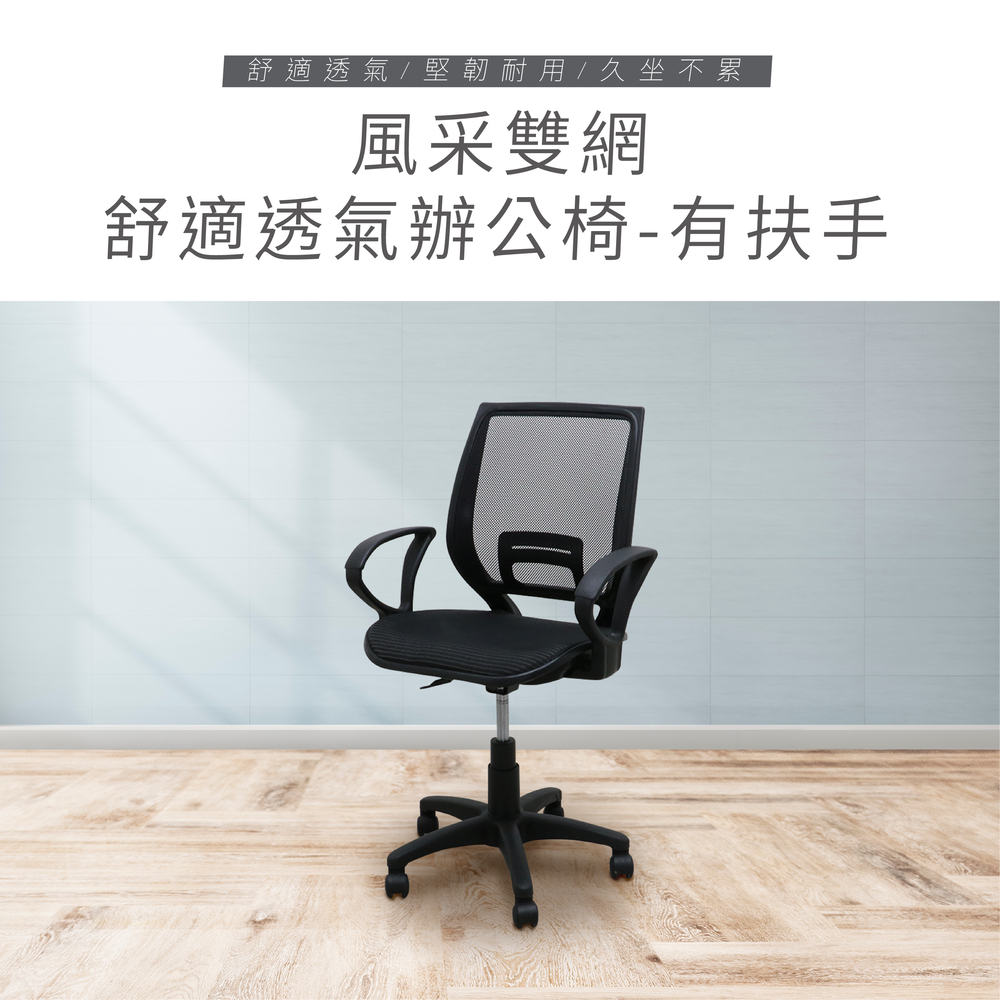風采雙網舒適透氣辦公椅-有扶手